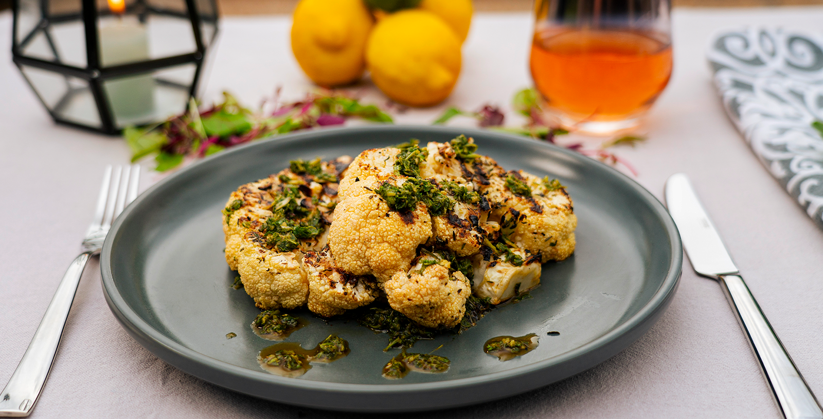 Beim nächsten Grillen hat der Gemüsespieß Pause - unsere Blumenkohl-Steaks mit Chimichurri-Sauce sind eine spannende vegetarische Alternative. Zwar gilt Blumenkohl allein als etwas farblos und fad, doch auf dem Grill wird er zu einer butterzarten, fast schon süßen Delikatesse. Dazu eine kräuterwürzige Sauce mit viel Koriander - willkommen im gesunden Gemüsehimmel!