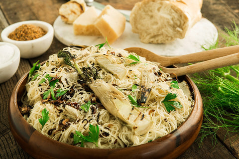 Gerösteter Fenchel, knuspriger Knoblauch & Schalotten auf Engelshaar
