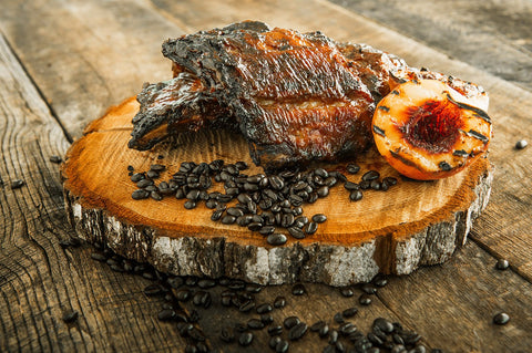 Leiterchen mit Espresso & BBQ Sauce mit gegrilltem Pfirsich