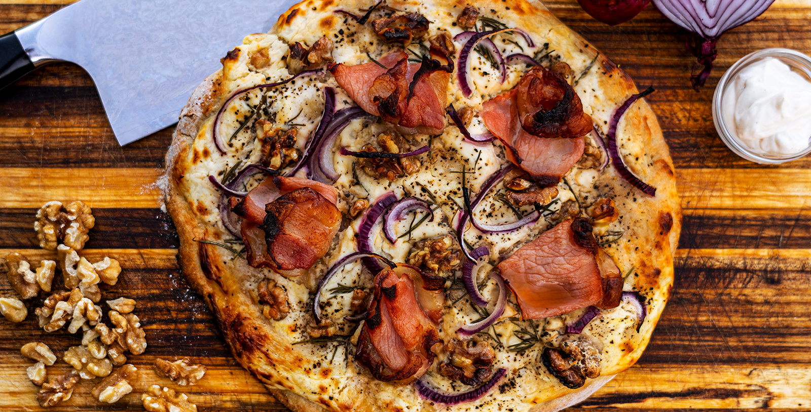 Kaum etwas geht über einen klassischen, schön krossen Flammkuchen. Wir zeigen euch, wie ihr auf eurem Grill ein perfekt knuspriges Exemplar mit feinem Raucharoma hinbekommt. Diejenigen unter euch, die gerne mal ihren Geschmackshorizont erweitern, können unser Flammkuchen-Rezept mit einem fruchtigen Touch krönen.