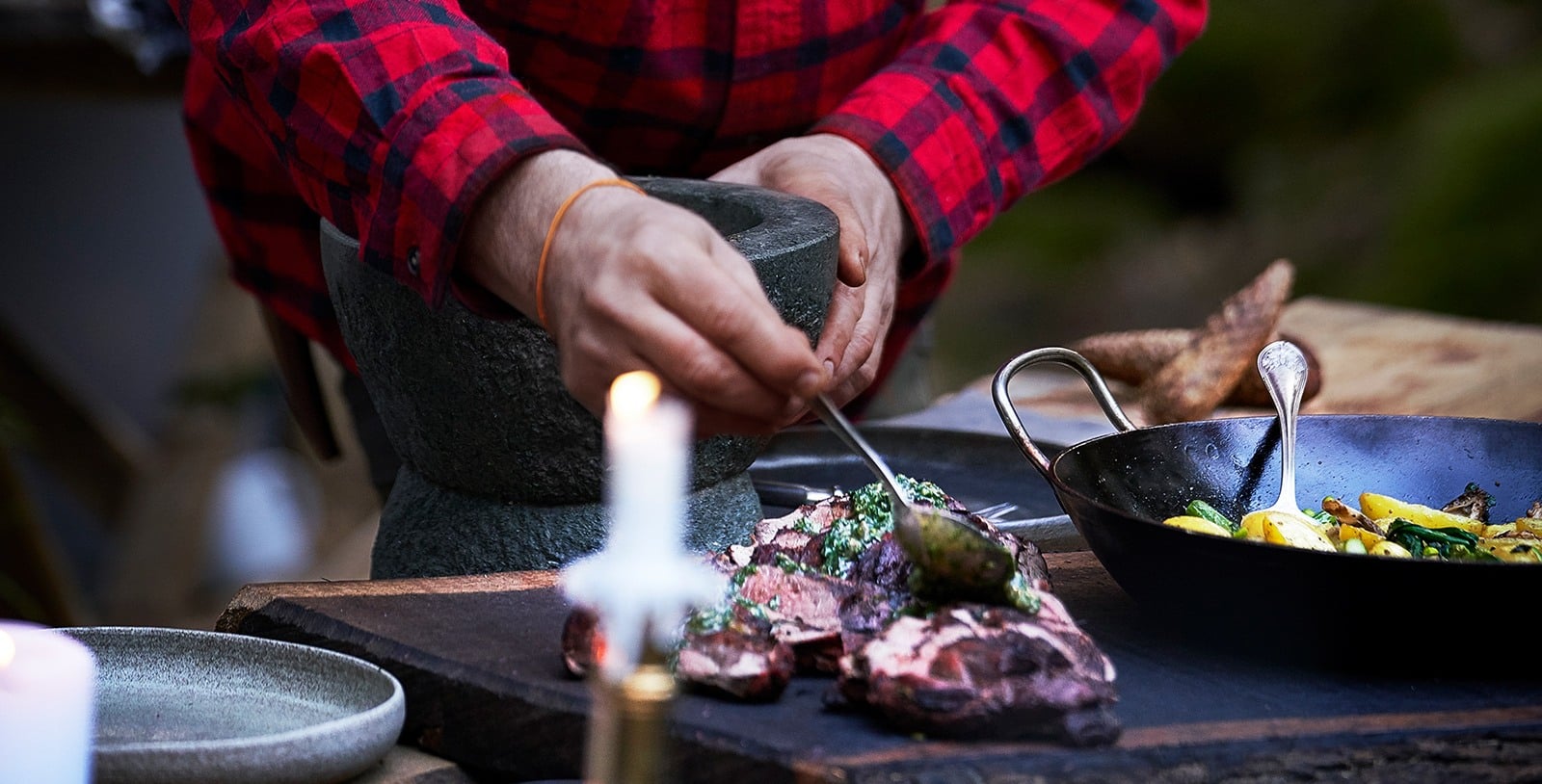 Das Fleisch vom Grill nehmen und 10-15 Minuten ruhen lassen.